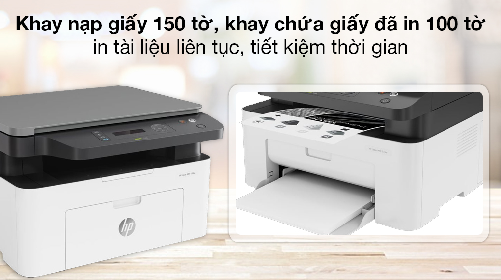 Không cần phải nạp và lấy giấy ra liên tục, nhờ đó bạn có thể xử lý công việc văn phòng hiệu quả, tiết kiệm thời gian hơn. Ngoài cỡ giấy A4 quen thuộc thì máy in HP còn in được với cỡ giấy in A5, B5 và bao thư.