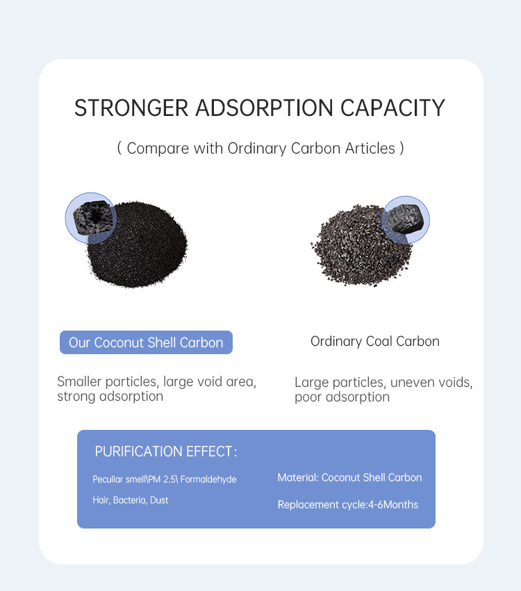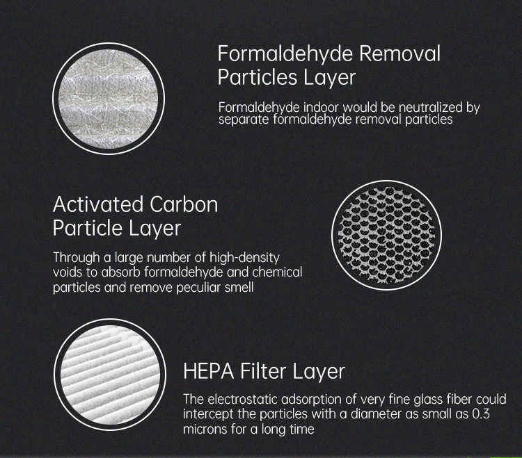 Thông qua một số lượng lớn các lỗ rỗng mật độ cao để hấp thụ formaldehyde và các hạt hóa học và loại bỏ mùi đặc biệt.