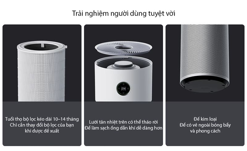 Máy lọc không khí Xiaomi Elite thiết kế lưới tản nhiệt lắp đặt ở phần trên của máy lọc cũng có thể tháo rời nhanh chóng để làm sạch phần ống dẫn khí dễ dàng hơn. Phần đế được làm bằng kim loại ấn tượng với vẻ ngoài phong cách, bóng bẩy hơn. Đồng thời Bộ lọc của máy lọc không khí thông minh Xiaomi Elite Y-600 bền bỉ kéo dài từ 10 – 14 tháng, thay đổi bộ lọc khi được đề xuất.