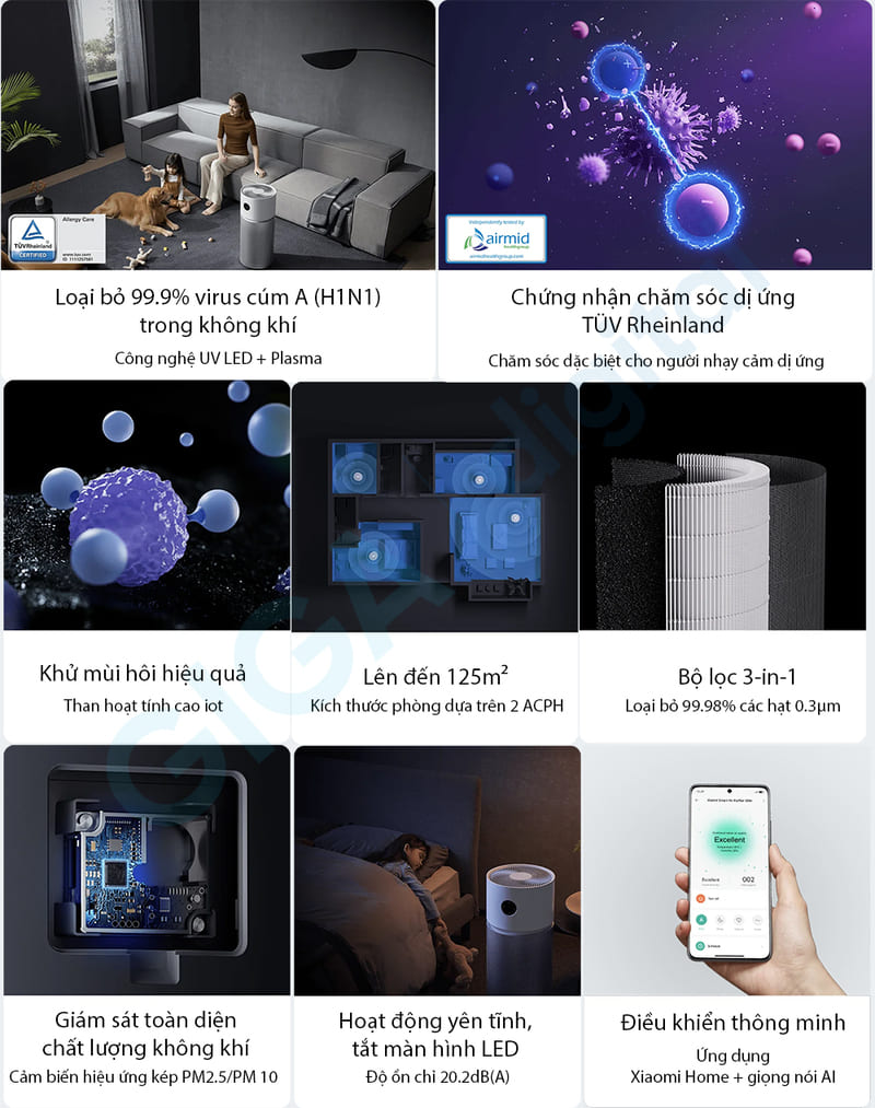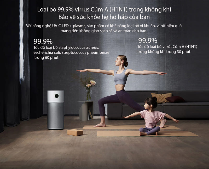 Máy lọc không khí Xiaomi Elite sở hữu công nghệ UV-C LED + Plasma cho khả năng loại bỏ đến 99.9% virus cúm A trong không khí chỉ với 30 phút và loại bỏ 99.9% staphylococcus aureus, escherichia coli, streptococcus pneumoniae trong vòng 60 phút mang đến không gian sạch sẽ và an toàn cho không gian sống gia đình bạn.