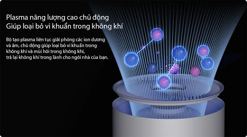 Máy lọc không khí Xiaomi trang bị bộ tạo plasma liên tục giải phóng các ion dương và âm giúp đảm bảo loại bỏ sạch vi khuẩn và mùi hôi trong không khí, trả lại không gian thoáng, không khí sạch trong lành và dễ chịu.