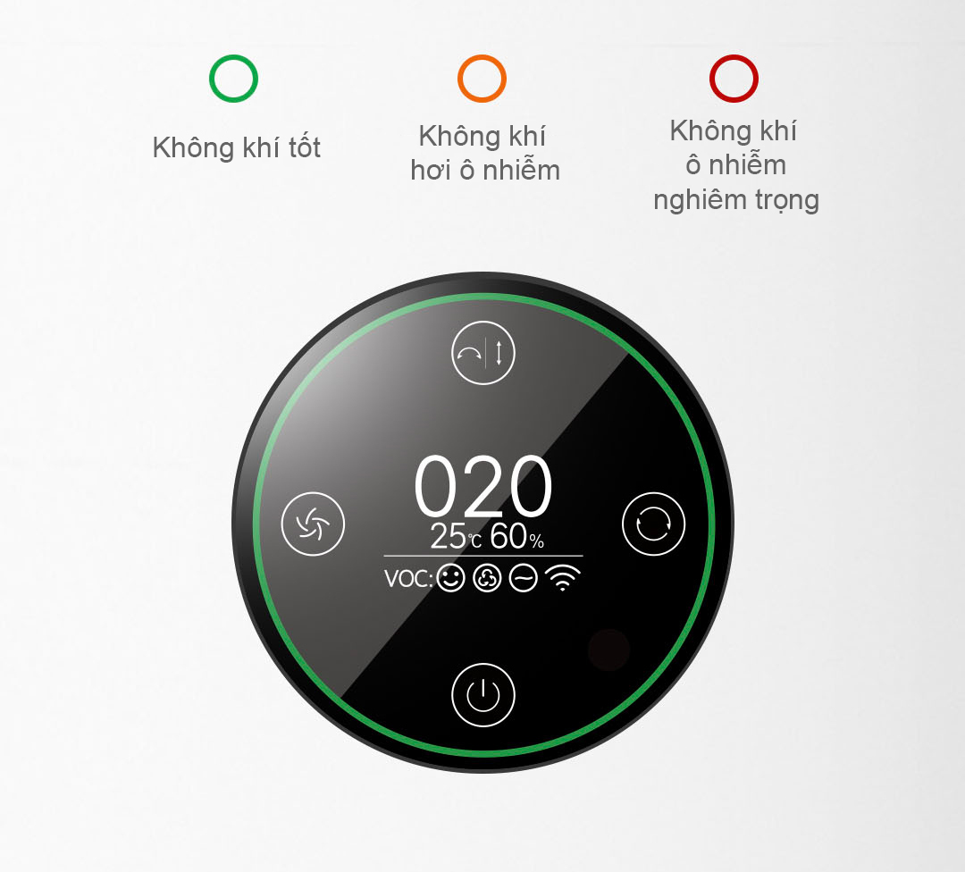 Màn hình này hỗ trợ hiển thị rõ ràng mức độ chất lượng không khí ngay lập tức.