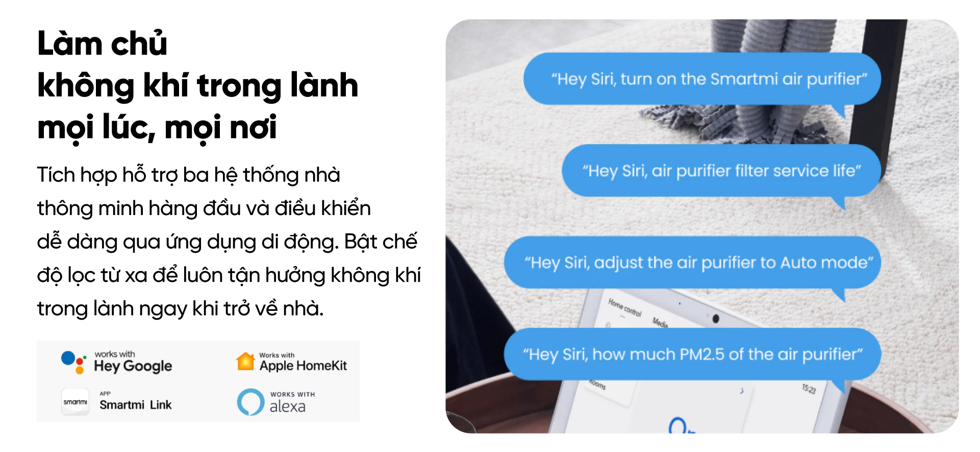 P1 được trang bị tính năng điều khiển thông qua ứng dụng Smartmi Link hoặc kết nối Wifi . Bạn có thể dễ dàng điều chỉnh chế độ lọc, theo dõi chất lượng không khí và nhận cảnh báo ngay trên điện thoại. Chế độ tự động điều chỉnh độ sáng màn hình cũng giúp tiết kiệm năng lượng và tăng tính tiện lợi.