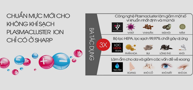 Tiêt diệt nấm mốc, khử sạch mùi thuốc lá, phấn hoa với công nghệ Plasmacluster Ion tiên tiến