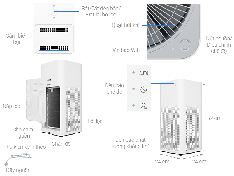 4 cấp độ lọc, tuần hoàn không khí trong phòng mỗi 11 phút, tiêu thụ điện năng thấp