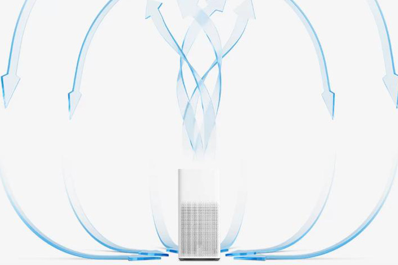 Hút không khí 3 chiều 360 độ và thổi luồng khí mạnh lên phía trên giúp không khí sạch mát nhanh chóng tỏa khắp phòng