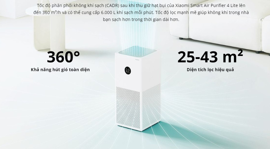 Xiaomi Mi Air Purifier 4 Lite lọc bụi nhanh chóng và hiệu quả