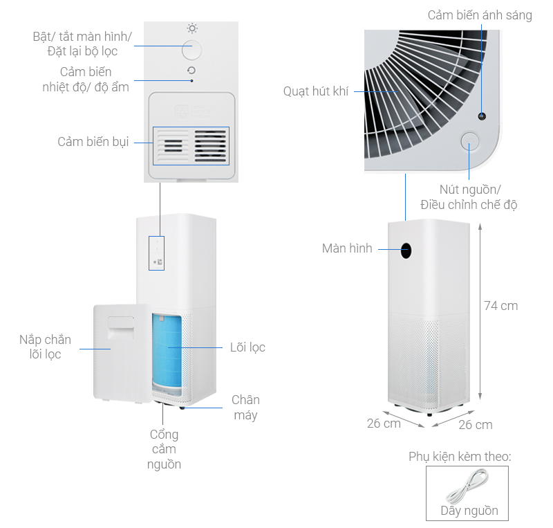 - Màng lọc Hepa giữ lại các chất gây dị ứng, mùi khói thuốc, bụi bẩn kích thước tới 0.3 micromet…