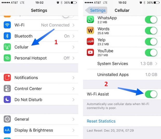 Cài đặt > Dữ liệu mạng > Wi-Fi Assist bật tính năng này lên.