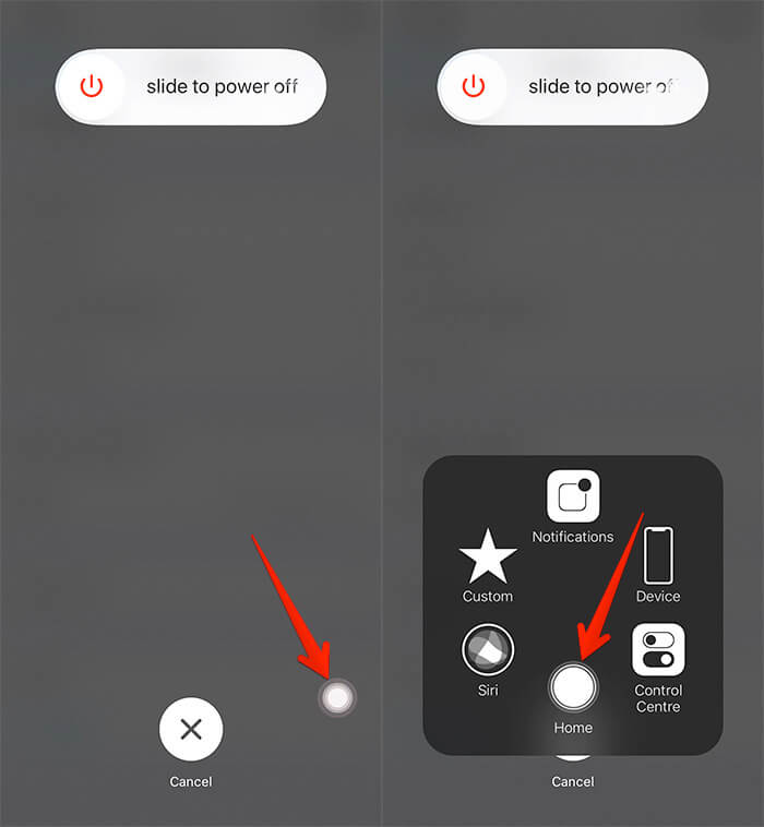 - Màn hình rất nhanh sẽ hiển thị với giao diện Slide to power off. Không chọn tính năng này và chọn nút AssistiveTouch để hiển thị các tùy chọn bổ sung.