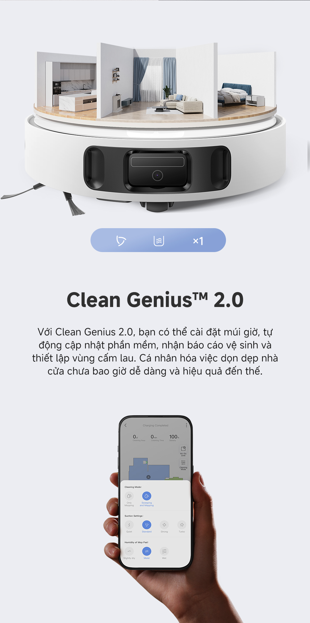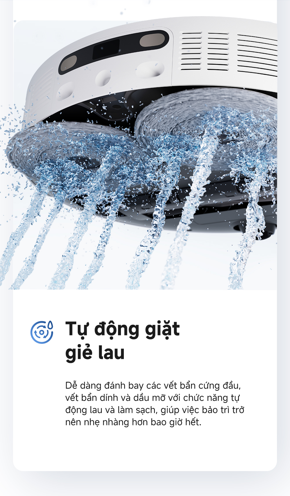 | Trạm sạc | Tự động đổ bụi, giặt và sấy giẻ lau |