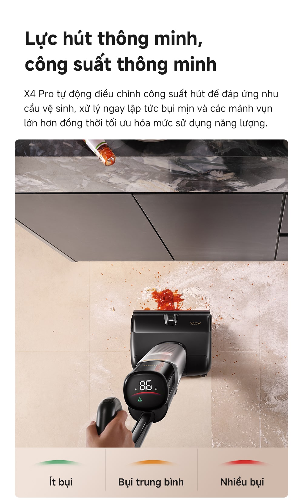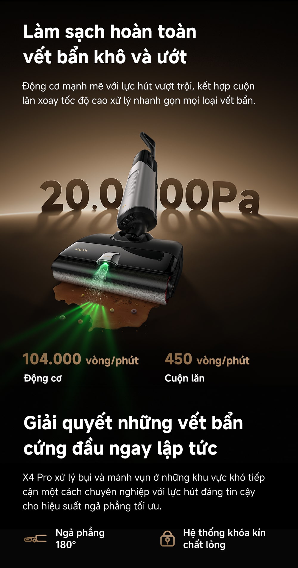 Bạn đang tìm kiếm một giải pháp làm sạch toàn diện, mạnh mẽ và thông minh cho ngôi nhà của mình? Máy hút bụi lau sàn khô và ướt MOVA X4 Pro chính là sự lựa chọn hoàn hảo! Với thông điệp "Nâng tầm sức mạnh làm sạch", X4 Pro mang đến trải nghiệm vệ sinh vượt trội, giúp bạn dễ dàng đánh bay mọi vết bẩn cứng đầu và duy trì sàn nhà luôn sáng bóng.