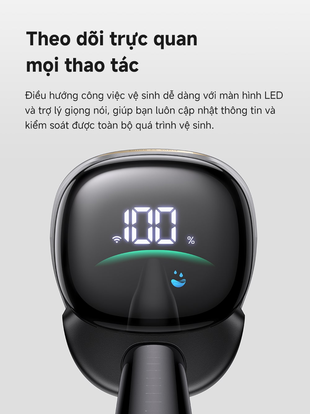 Màn hình LED & Hướng dẫn bằng giọng nói giúp bạn dễ dàng theo dõi và điều khiển quá trình làm sạch.