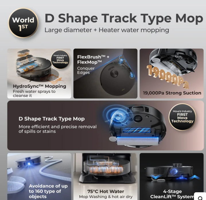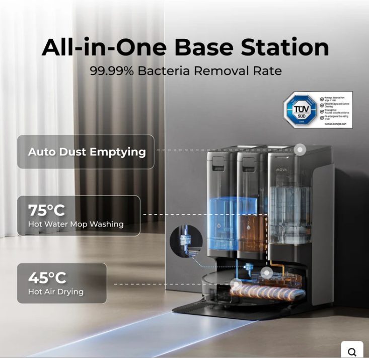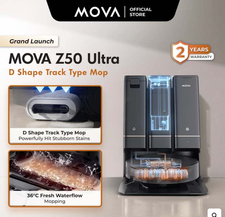 Mova Z50 Ultra là một trong những robot hút bụi tiên tiến nhất được ra mắt vào năm 2025, kết hợp giữa công suất hút mạnh mẽ và công nghệ lau sàn tiên tiến. Sản phẩm này được thiết kế để mang lại trải nghiệm làm sạch tự động, tiết kiệm thời gian và công sức cho người dùng. Với nhiều tính năng đột phá như HydroSync™ Wiping (lau sàn bằng nước nóng), công suất hút 19.000 Pa, và hệ thống AI thông minh, Mova Z50 Ultra đang được đánh giá cao trên thị trường.