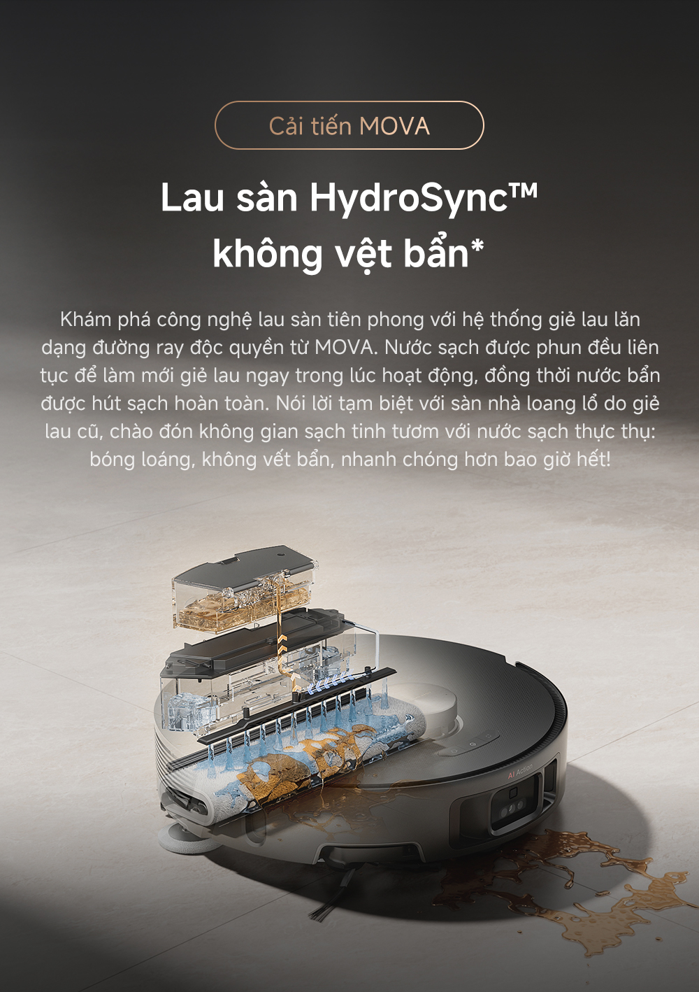 MOVA tự hào giới thiệu công nghệ lau nhà bằng giẻ lau dạng đường ray, một bước tiến vượt bậc trong lĩnh vực vệ sinh.