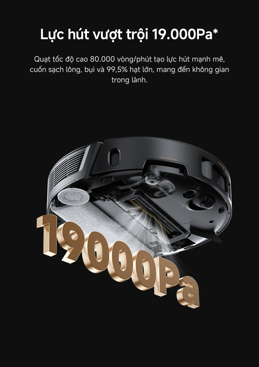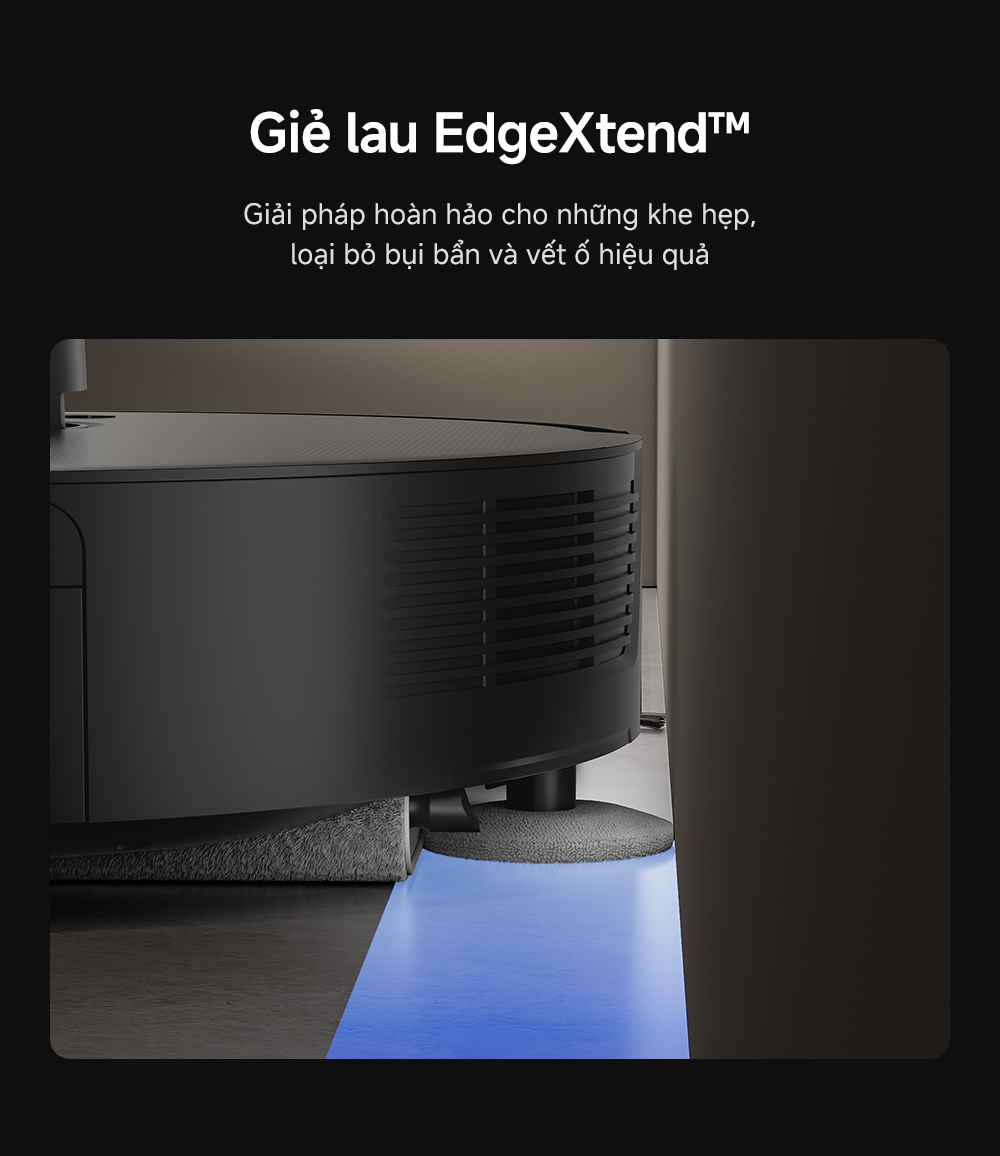 Chà: Giẻ lau lớn dạng đường ray tạo lực chà mạnh mẽ 18N, làm sạch triệt để khi lăn trên sàn.