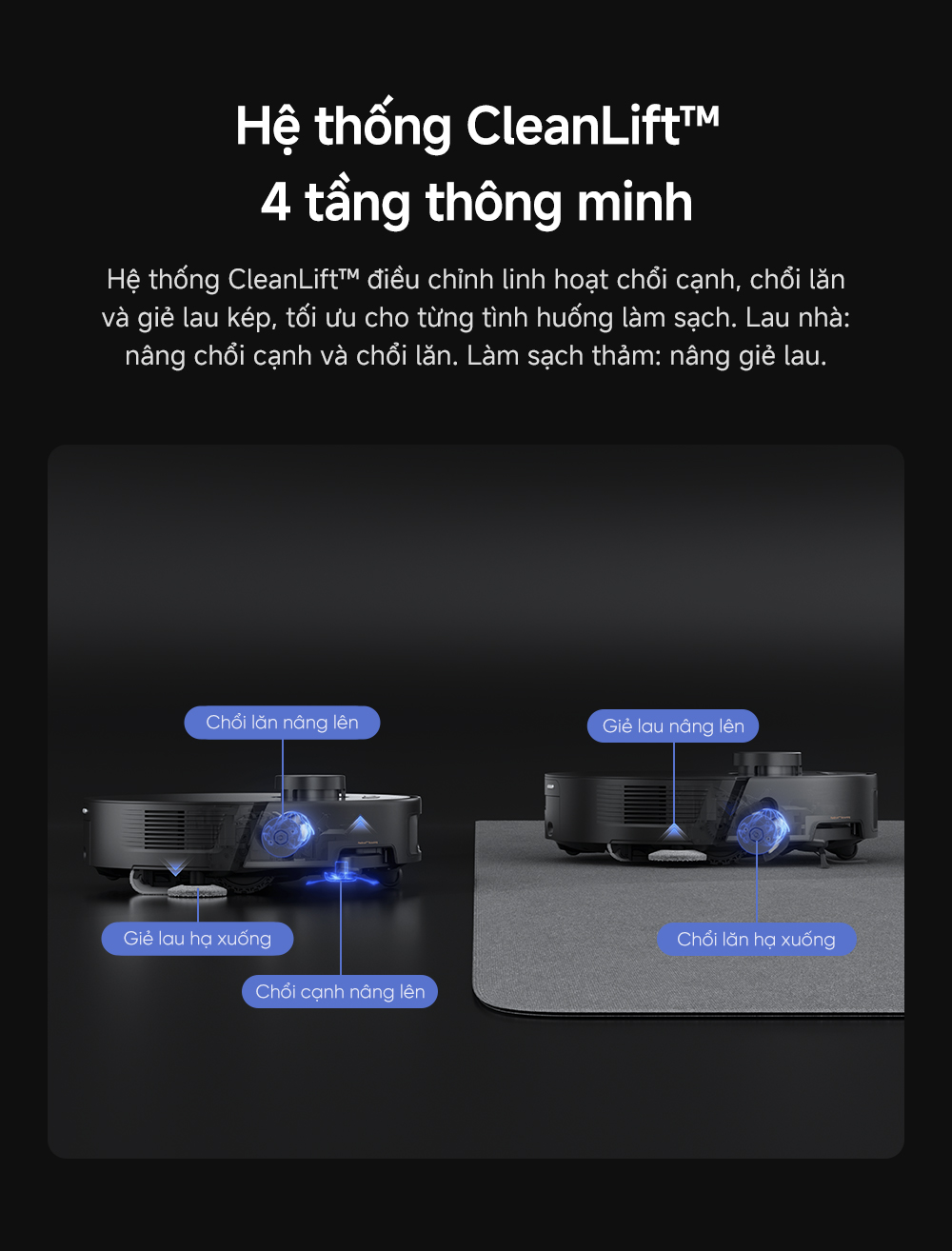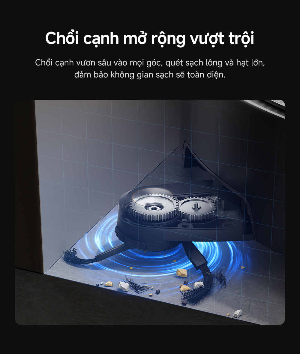 Cạo: Bộ phận cạo xoay kết hợp với giẻ lau để loại bỏ bụi bẩn từ mọi góc cạnh, đảm bảo sàn nhà sạch bóng và không để lại vệt.