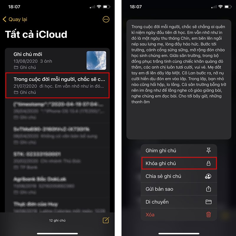 Bạn thường xuyên phải ghi chú các nội dung quan trọng và muốn chúng phải được bảo mật. Hãy vào ứng dụng Ghi chú > nhấn giữ vào ghi chú đó > chọn Khóa ghi chú.