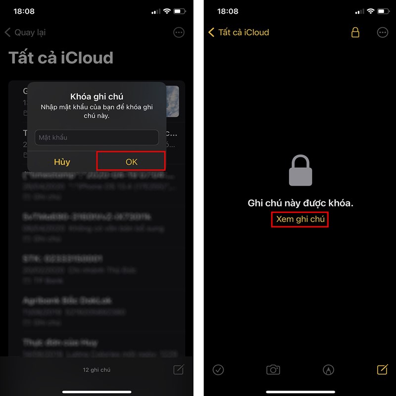 Bạn nhập mật khẩu và nhấn OK là xong. Giờ đây, để xem ghi chú đó cần phải có mật khẩu của bạn.