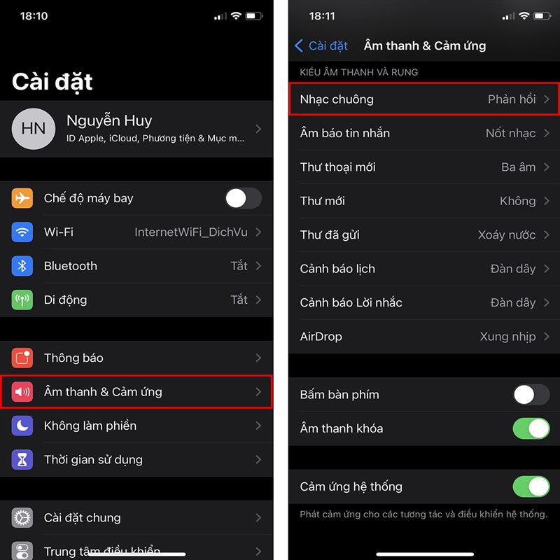 Bạn vào Cài đặt > Âm thanh & Cảm ứng > Nhạc chuông.