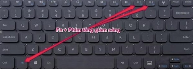 Hoặc các bạn có thể dùng Hotkey : bấm tổ hợp phím Fn + hình bóng đèn trên bàn phím
