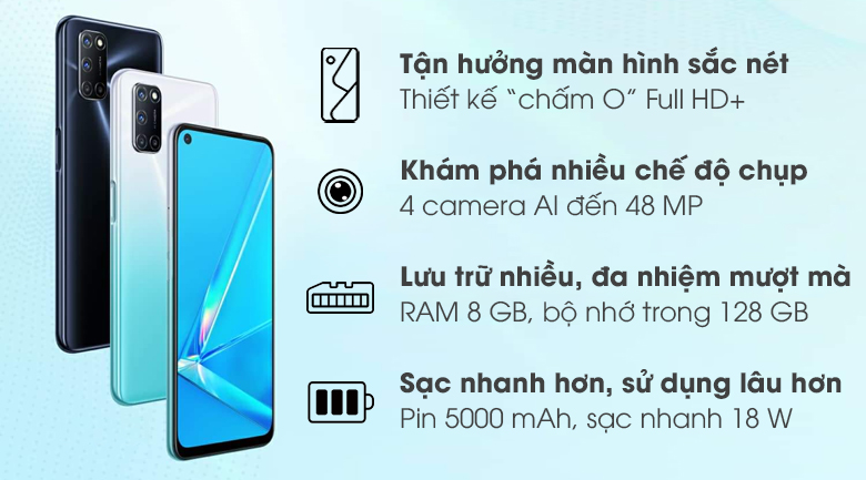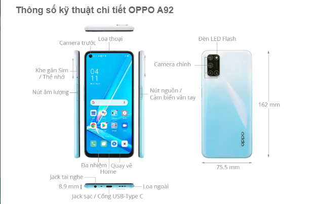 OPPO A92 là mẫu smartphone tầm trung vừa mới được OPPO ra mắt đầu tháng 5/2020. Chiếc điện thoại gây ấn tượng với thiết kế màn hình khoét lỗ tràn viền, cụm 4 camera ấn tượng và được bán với mức giá vô cùng phải chăng.