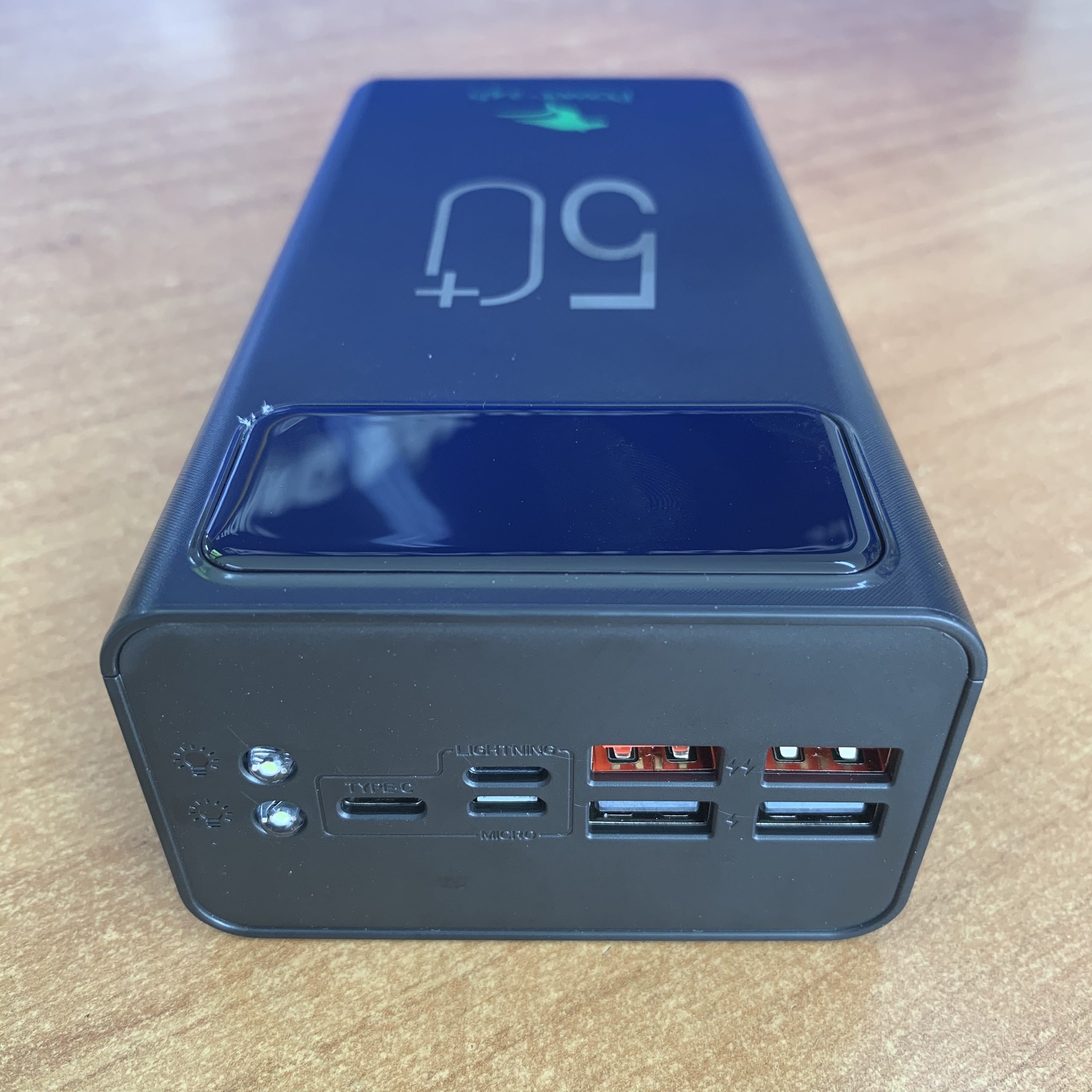 Sạc dự phòng H10-50.000 mAh còn trang bị 2 đèn pin siêu sáng, rất có ích khi đi vào khoảng đường tối hoặc mất điện đột ngột vào mùa hè