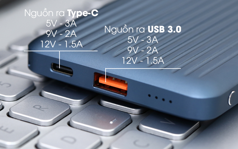 Hỗ trợ 2 cổng sạc ra bao gồm Type-C Power Delivery và cổng USB Quick Charge 3.0 giúp tiết kiệm thời gian sạc pin một cách đáng kể.