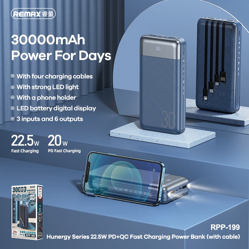 | Tên sản phẩm: | Pin sạc dự phòng 30000mAh 22.5W Remax RPP-199 |