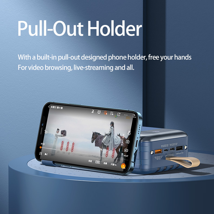 Bên cạnh đó, viên pin sạc dự phòng còn được trang bị màn hình LED hiển thị dung lượng pin vừa giúp người dùng có thể dễ dàng theo dõi vừa mang đến vẻ ngoài sang trọng hơn. Đặc biệt, cạnh bên viên pin là thiết kế móc có chức năng như một chiếc giá đỡ điện thoại, đáp ứng đầy đủ mọi nhu cầu sử dụng của người dùng.