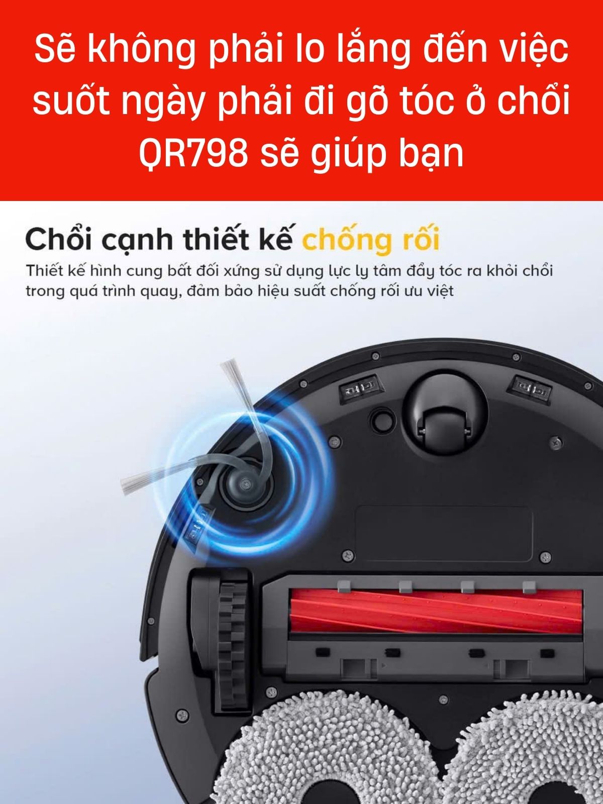 ✅-Chổi chính và chổi cạnh chống rối: Thiết kế đặc biệt giúp ngăn chặn tình trạng tóc và lông thú cưng bị cuốn vào, giảm thiểu việc bảo trì và đảm bảo hiệu suất làm sạch liên tục.