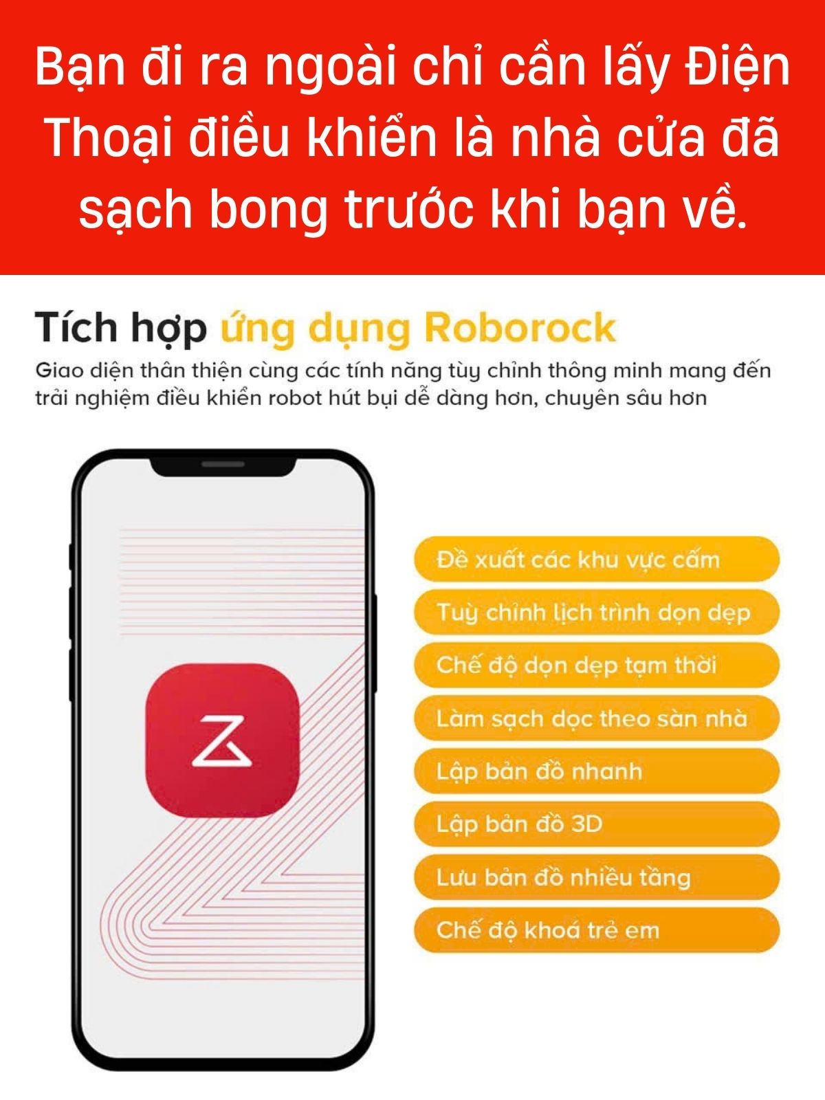 ✅-Điều khiển thông minh qua ứng dụng Roborock: Dễ dàng thiết lập lịch trình, tùy chỉnh chế độ làm sạch và theo dõi quá trình hoạt động của robot từ xa.