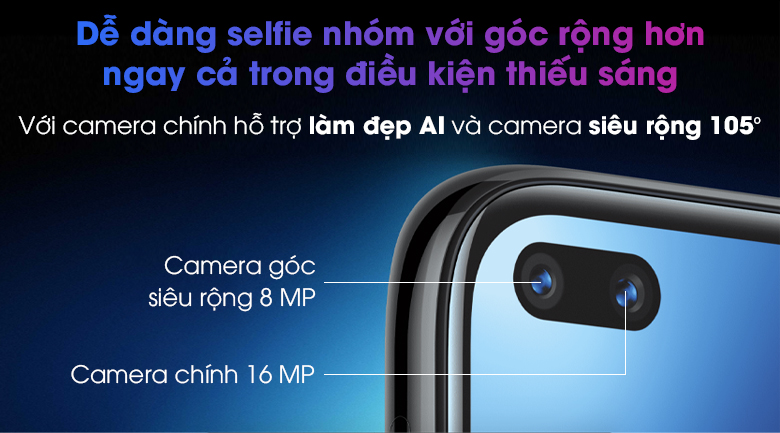 | Camera trước: | Chính 16 MP & Phụ 8 MP |