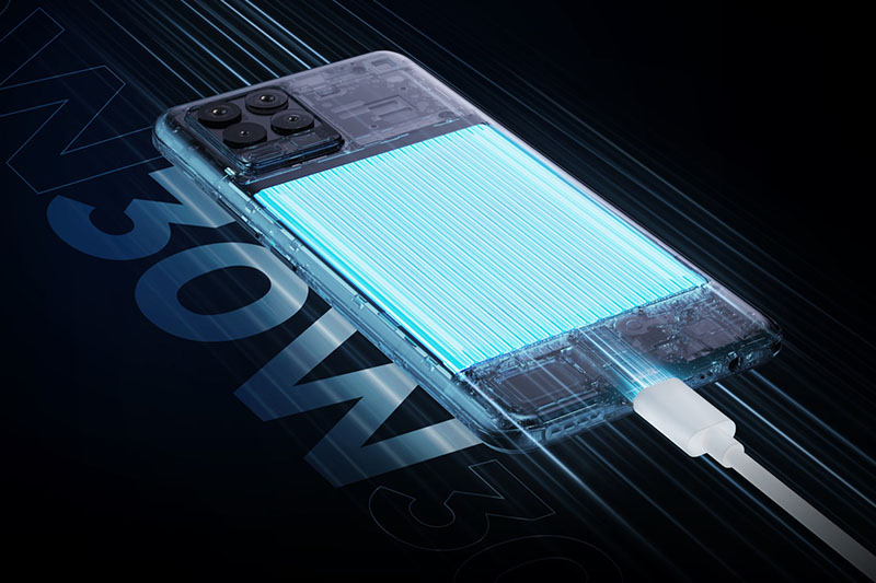 Sử dụng củ sạc nhanh lên đến 30 W hỗ trợ người dùng nạp đầy dung lượng điện thoại vô cùng nhanh chóng, người dùng chỉ cần chờ đợi trong vòng chỉ khoảng một tiếng là đã có viên pin tràn đầy năng lượng.