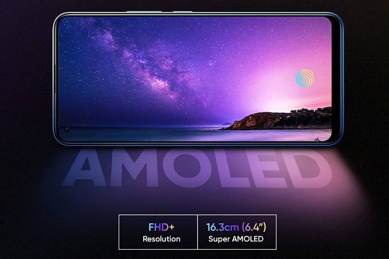 Tấm nền Super AMOLED được trang bị trên Realme 8, vì vậy mà màn hình của máy sáng rực rỡ, sắc nét dưới độ sáng lên đến 1000 nits, độ tương phản cao giúp điện thoại hiển thị rõ ràng hơn bao giờ hết kể cả bị nắng chói.