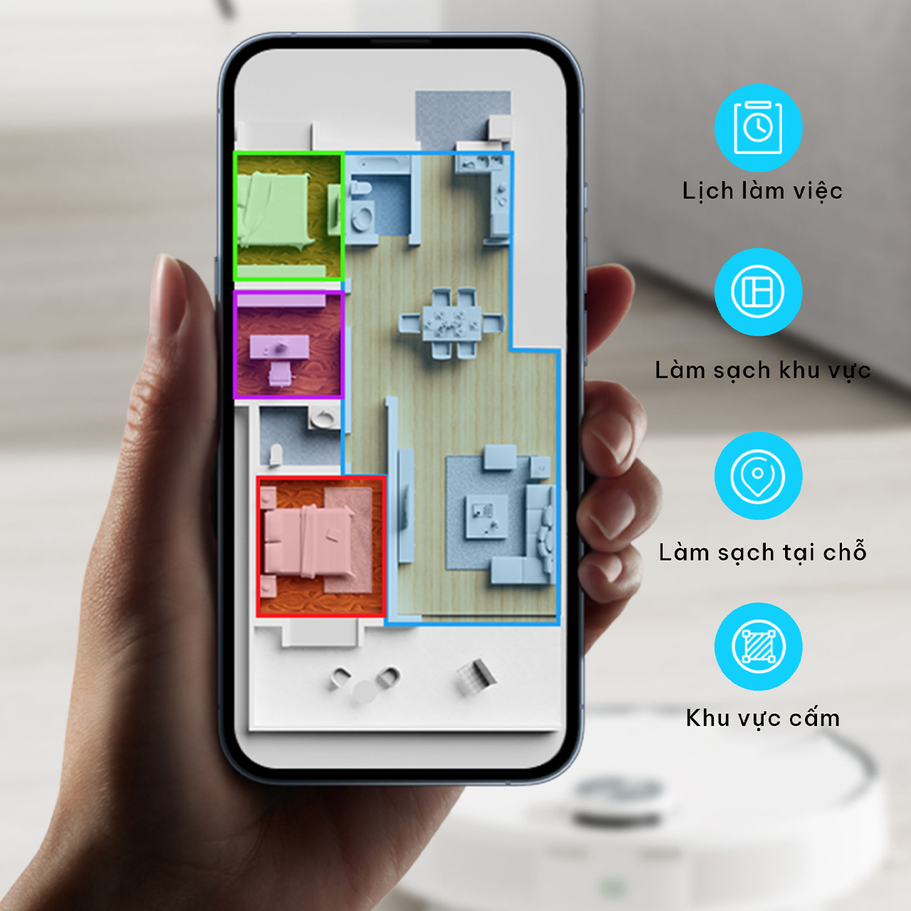 Như hầu hết các dòng robot hút bụi thông minh khác, Redroad G10 kết nối với ứng dụng và điều khiển nó từ xa. Bạn dễ dàng sử dụng smartphone của mình để thay đổi cài đặt, đặt lịch dọn dẹp và thậm chí tạo tường ảo và vùng cấm để ngăn Redroad G10 đi vào một số khu vực nhất định – chẳng hạn như phòng tắm nhà bạn. Ngoài ra, bạn cũng có thể theo dõi được diện tích đã làm sạch cũng như % pin của robot ngay trên app.