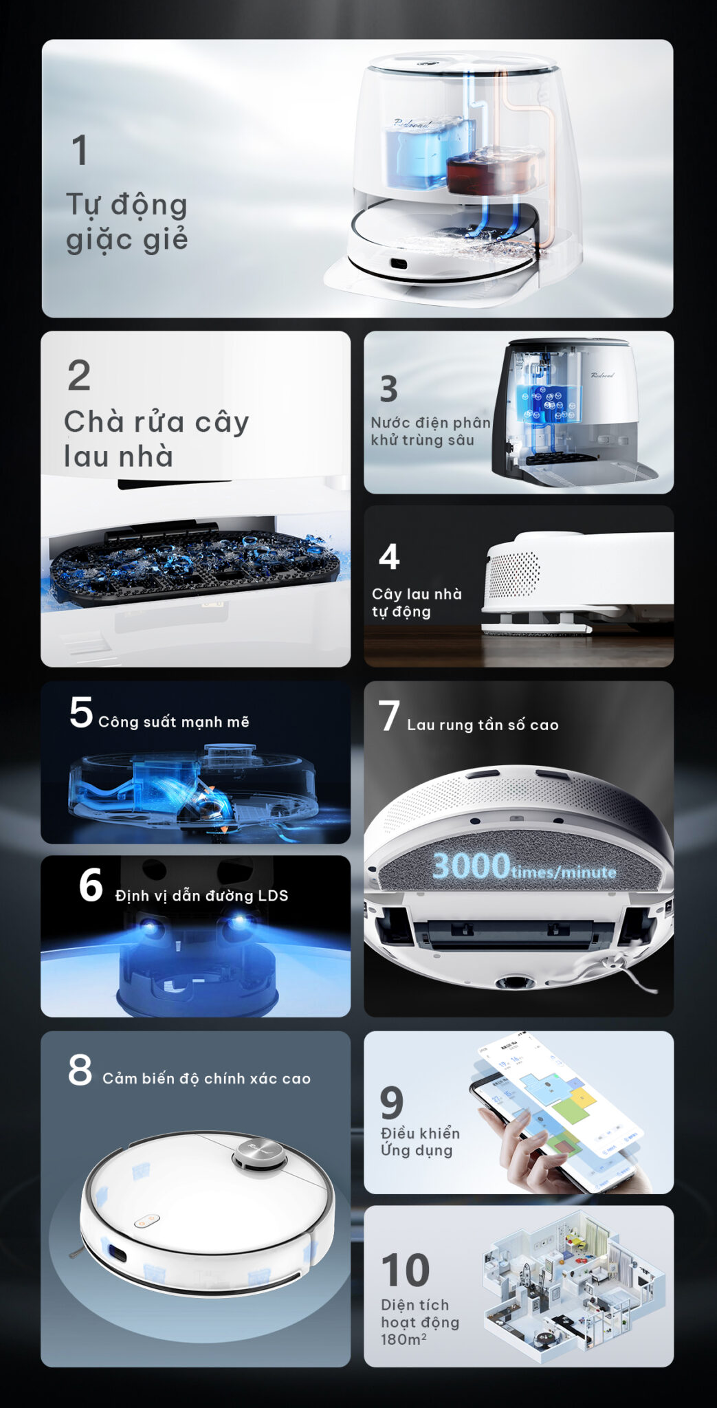 Redroad được biết đến là nhà cung cấp “ lối sống đẹp và gọn gàng”, với tinh thần hướng đến người dùng, mới đây Redroad cho ra mắt robot hút bụi lau nhà Redroad G10 với nhiều tính năng thông minh được tích hợp như: Tự động giặt, làm khô khăn lau; Điện phân nước khử trùng; Cảm biến tự động nâng giẻ;…cùng nhiều chức năng khác tạo nên sản phẩm robot ưu việt với giá thành phải chăng
