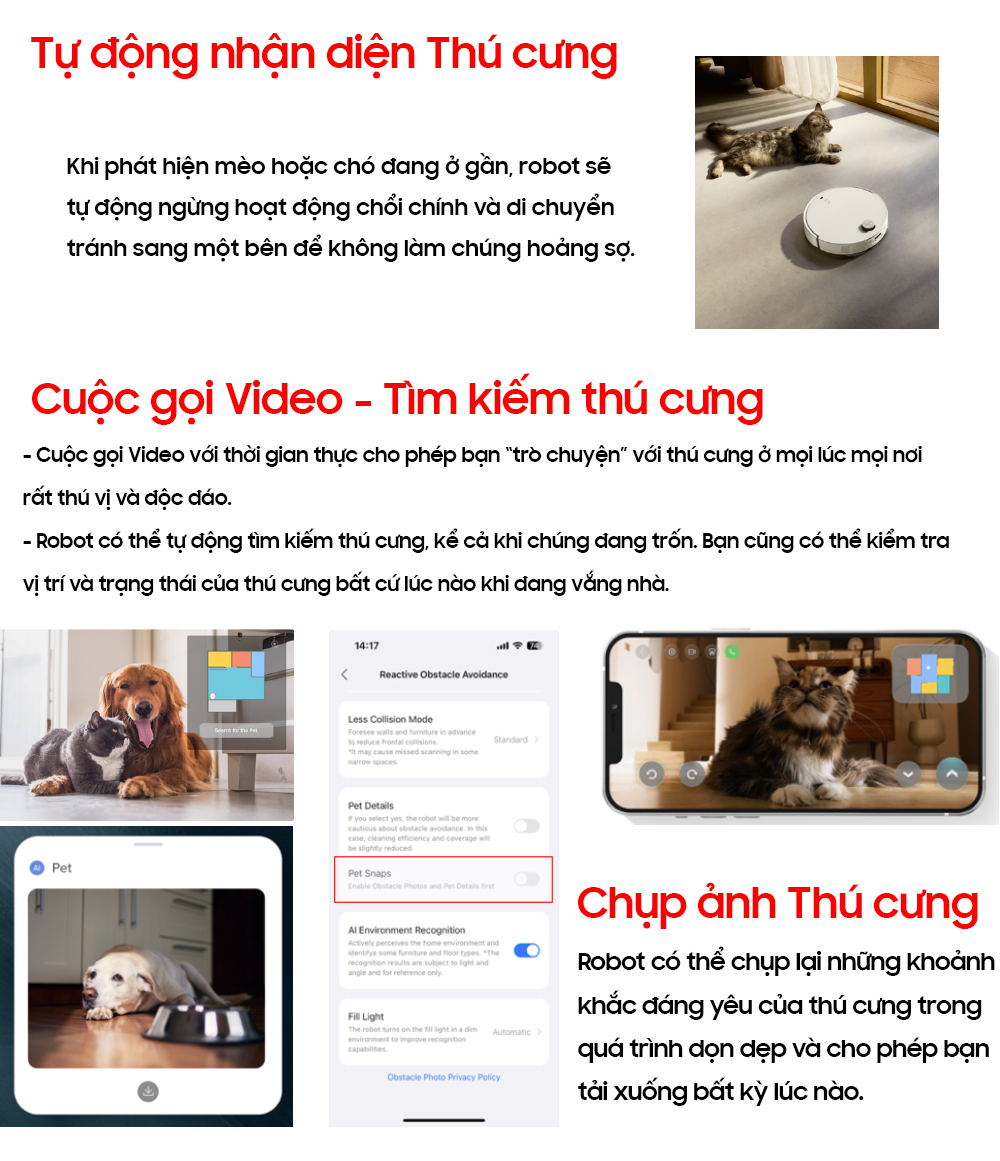 Roborock Q Revo EdgeT chiều lòng cả những người yêu PET, Chụp ảnh thú cưng, tìm kiếm thú cưng, Cuộc gọi Video với thời gian thực là những công nghệ tiên tiến giúp Robot không chỉ là một thiết bị dọn nhà hoàn hảo, mà còn là "công cụ" để bạn trao đổi, quản lý Thú cưng của mình