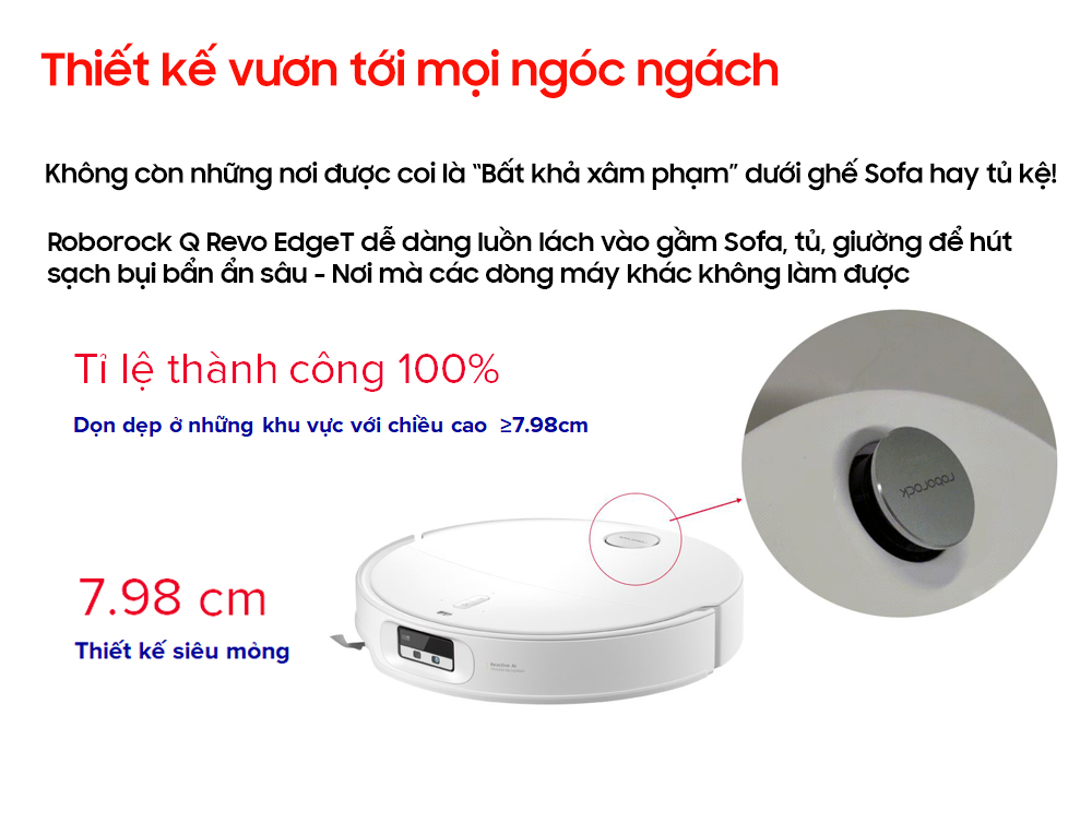 Cạnh tường, góc hẹp, góc nhà luôn là những điểm yếu của các Robot khác trên thị trường. Nhưng với Roborock Q Revo EdgeT thì đó lại là công nghệ tiên tiến