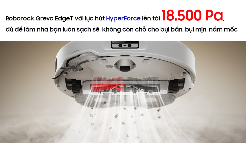 Roborock Qrevo EdgeT mang đến sức mạnh làm sạch ấn tượng với lực hút HyperForce lên tới 18.500 Pa, giúp cuốn bay mọi loại bụi bẩn, không để lại cơ hội cho bất kỳ mảnh vụn nào tồn tại trên sàn nhà bạn