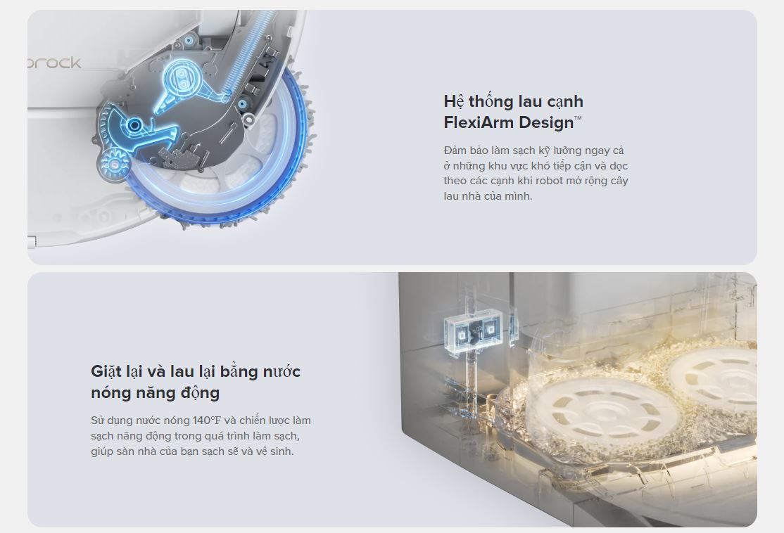 Ngoài cơ chế lau xoay, Q Revo Pro trang bị thiết kế FlexiArm cho chổi lau, giúp linh hoạt lau sàn theo các cạnh và tăng độ bao phủ lên đến 92%.