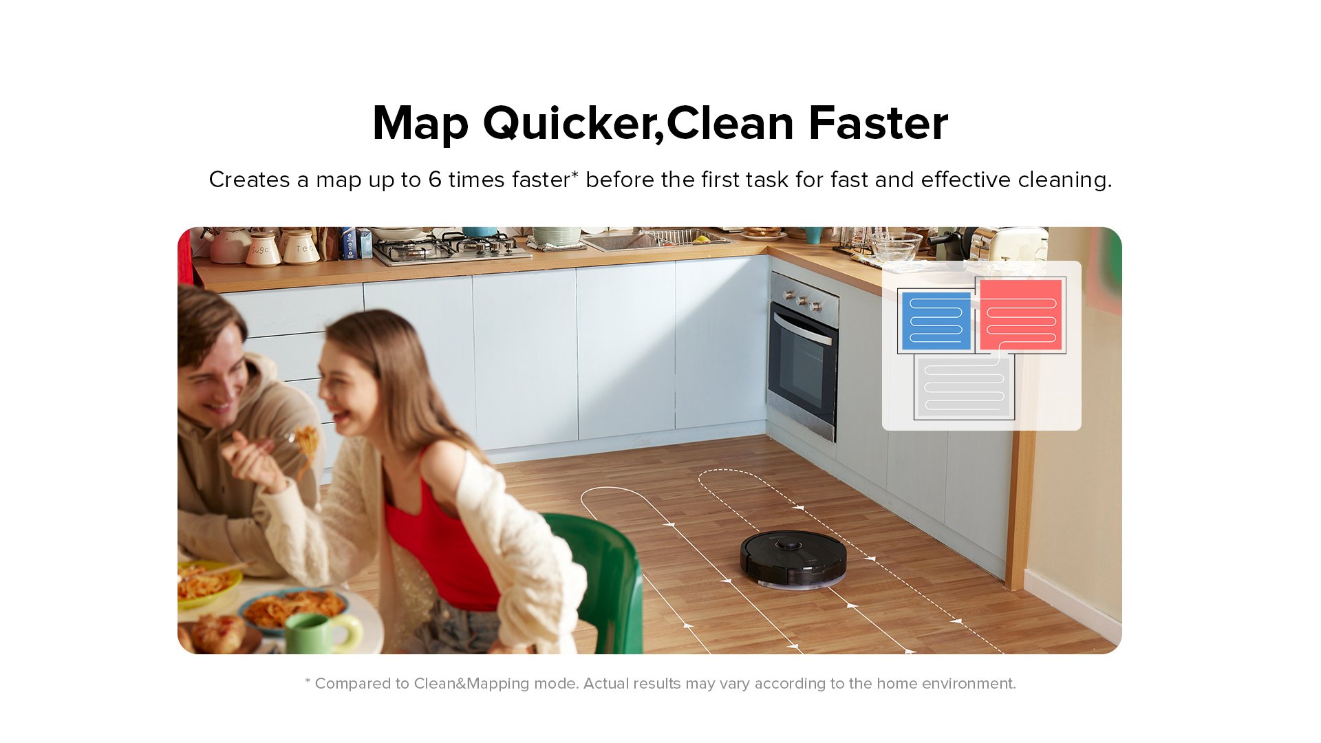 Robot hút bụi Roborock Q5 Pro hỗ trợ lập bản đồ nhanh gấp 6 lần so với thế hệ trước, tiết kiệm thời gian cho người dùng, không cần phải chờ đợi quá lâu như trước đây. Đồng thời, đây là dạng bản đồ 3D sẽ đem lại tính trực quan, dễ nhìn, dễ sử dụng,...