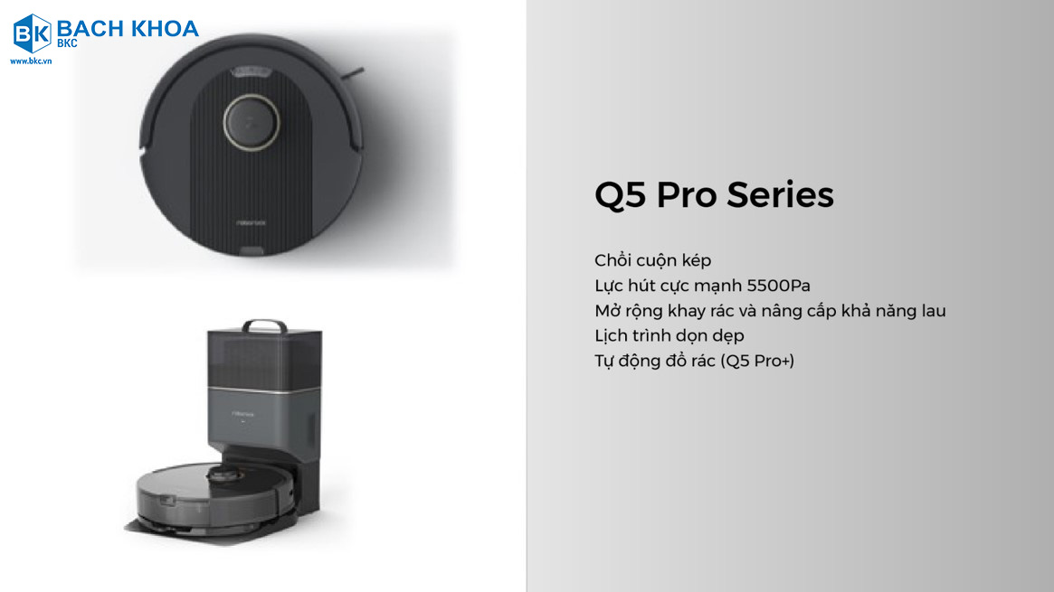 Robot hút bụi lau nhà Roborock Q5 Pro Series là dòng sản phẩm tầm trung của Roborock vừa mới ra mắt, tuy nhiên nó vẫn sở hữu những tính năng hiện có trên các dòng cao cấp như lực hút 5500Pa và sở hữu 02 chổi cuộn như dòng Roborock S8 Series.