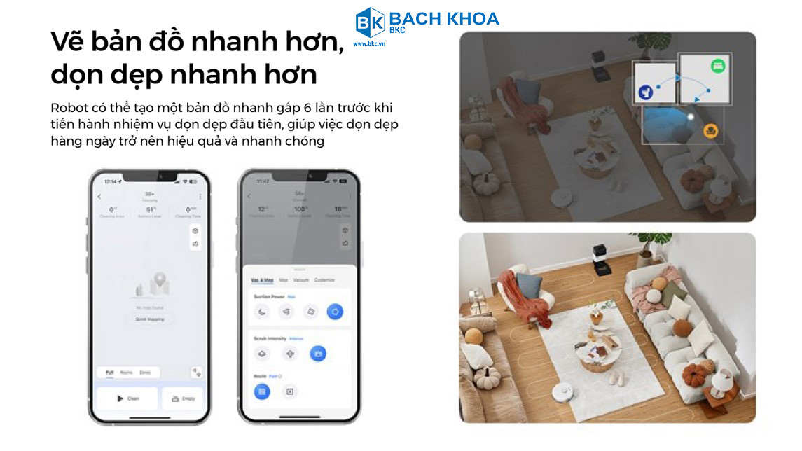 Robot có thể tạo một bản đồ nhanh gấp 6 lần trước khi tiến hành nhiệm vụ dọn dẹp đầu tiên, giúp việc dọn dẹp hàng ngày trở nên hiệu quả và nhanh chóng