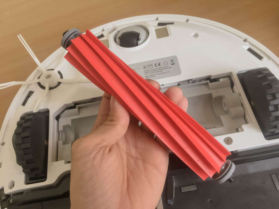 Roborock S7 “rửa mắt” người tiêu dùng bằng cuộn chổi cao su màu cam nổi bật. Cuộn chổi cao su là hình ảnh quen thuộc đối với dòng robot hút bụi cao cấp nhà iRobot. Nó sẽ có tác dụng chà sát, đánh bật vết bản tốt hơn so với những thiết kế trước đây. Cuộn chổi mới thiết kế chống rối và mắc tóc hiệu quả. Và xử lý triệt để các vấn đề về tóc hay lông thú cưng. Tuy nhiên, do chất liệu cao su nên mức độ tiếng ồn khi nó chà sát xuông mặt sàn sẽ cao hơn. Độ ồn sẽ lớn hơn.