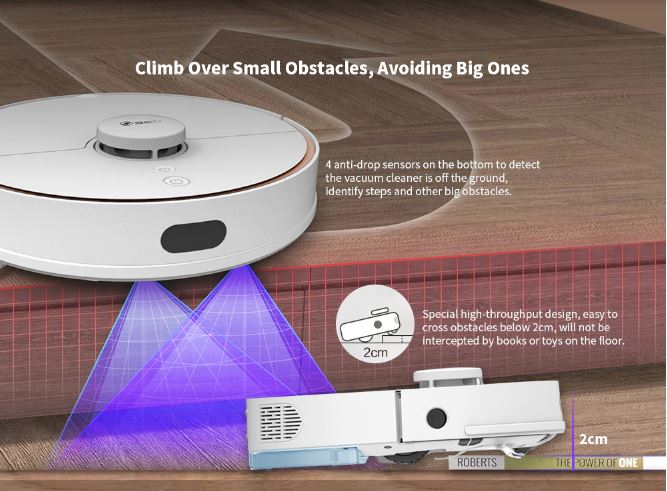 Cũng giống như những sản phẩm robot khác, S7 có ngưỡng leo tiêu chuẩn là 2cm. Cho phép robot dễ dàng di chuyển qua các bậc, gờ cửa giữa các phòng với nhau. Chỉ cần vật cản không quá 2cm là robot “băng qua” trong nháy mắt.