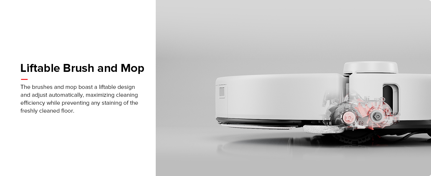 Hệ thống lau nhà VibraRise 3.0: Với các mô-đun rung kép, cây lau nhà nâng cấp dễ dàng xử lý bụi, bụi bẩn và vết bẩn khô thông qua khả năng chà rửa tốc độ cao 4000 lần/phút. Nó nâng lên đến 20mm so với mặt đất trong khi làm sạch thảm, cho phép hút bụi và lau nhà đồng thời mà không gây ẩm ướt không mong muốn.