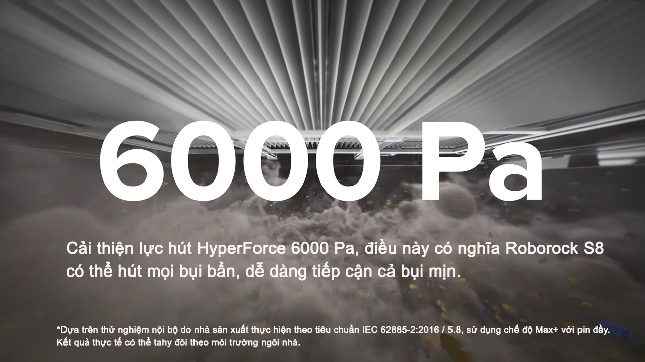 Đặc biệt, Roborock S8 Plus có lực hút lên đến 6000 Pa, nên ngay cả những hạt bụi mịn nhỏ vẫn được robot hút đi một cách dễ dàng. Hơn nữa, trên robot còn có hệ thống tăng cường thảm Roborock+, giúp làm sạch thảm dễ dàng và nhanh hơn.