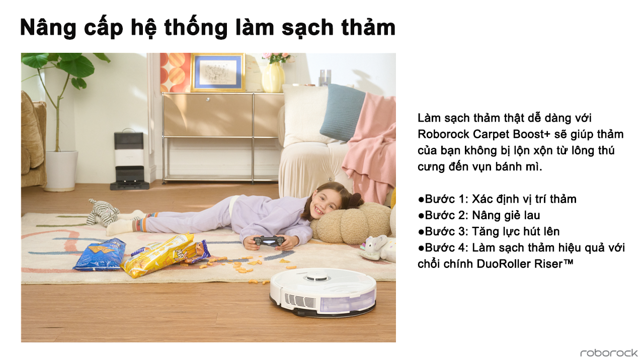 Đặc biệt hơn thế, Roborock S8 Plus còn tự động nâng giẻ lau lên vài mm nếu vị trí đi qua là thảm. Điều đó sẽ tránh làm ướt thảm mà vẫn đảm bảo hút sạch sẽ mọi bụi bẩn.