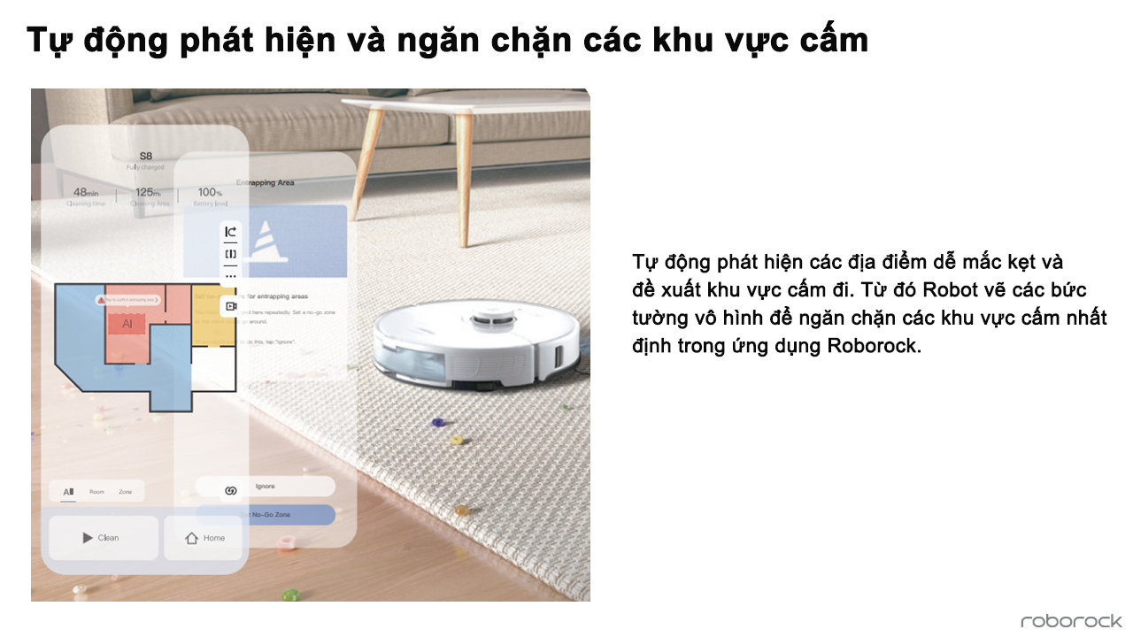 Ngoài ra, robot hút bụi lau nhà Roborock S8+ được tích hợp công nghệ hình ảnh hồng ngoại với khả năng né chướng ngại vật theo AI. Do đó, trong quá trình dọn dẹp, robot sẽ có khả năng phát hiện và tránh các mối nguy hiểm có trên sàn nhà, ngay cả khi trời sáng và tối.